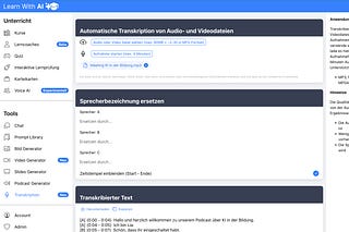 Transkribierung mit Sprechererkennung und Zeitstempel in Learn-With.AI