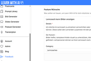 Neue Featurewünsche für Learn-With.AI einreichen – und mitentscheiden, was als Nächstes kommt